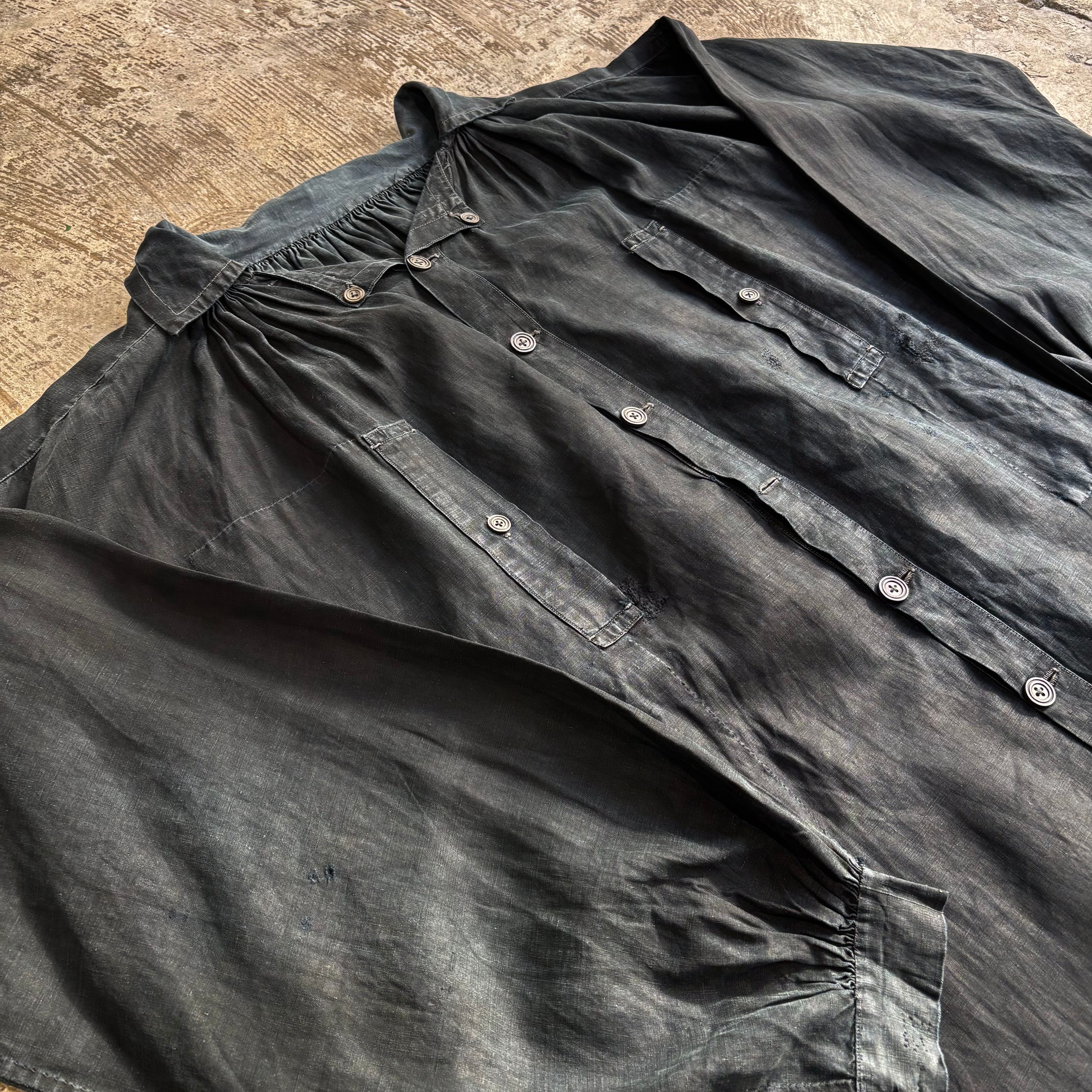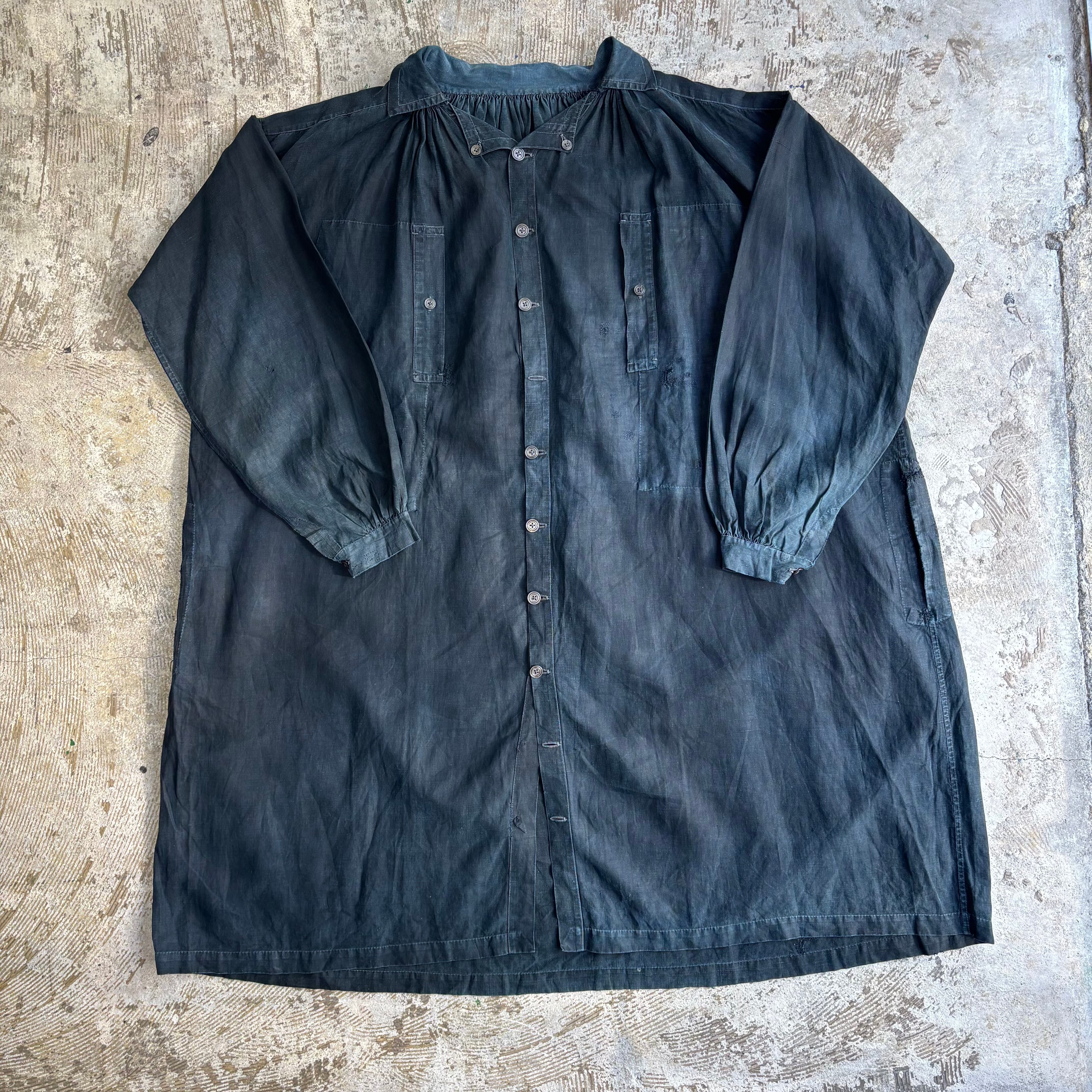 インディゴリネンスモック フランス ビンテージ